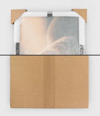 Our framed canvases are securely protected during shipping. We use bubble wrap, protective cardboard sheets, foam corner guards, and a sturdy cardboard box to ensure safe delivery.